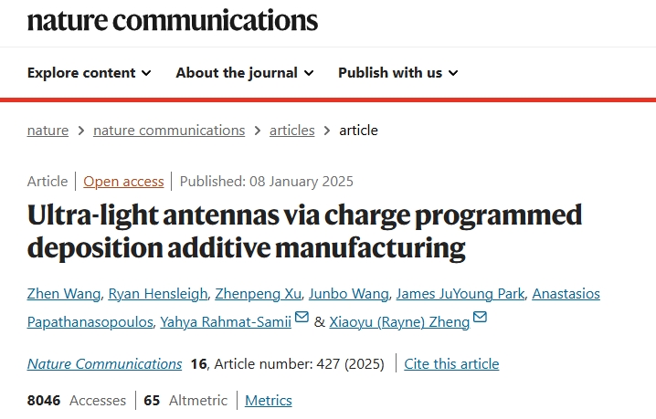 国际动态 | 加州大学伯克利分校开发电荷编程沉积(CPD)3D打印技术,用于制造轻型高性能天线