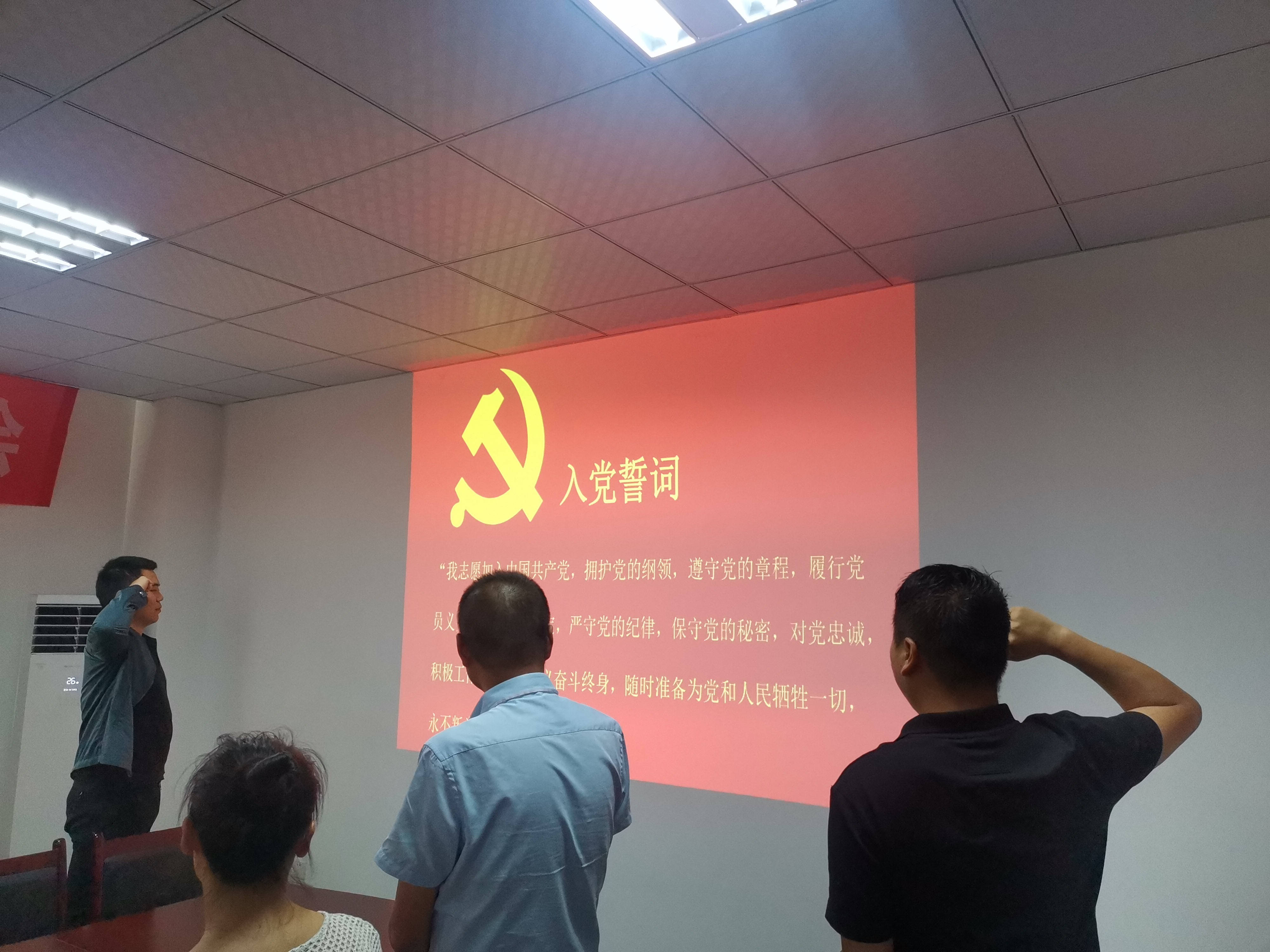 首先,全体代表起立,重温入党誓词,新预备党员面向党旗进行入党宣誓。