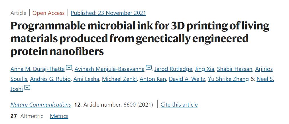 国际动态 | 微生物墨水能3D打印可…