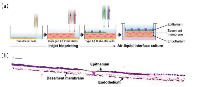 喷墨打印用于病理和药理研究的肺泡模型