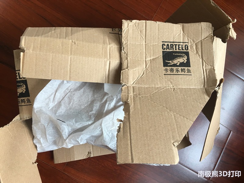 南极熊收到货后,第一感觉就是拼多多这个鞋子的包装非常环保,只用了薄薄的纸盒包装(虽然收到的盒子就已经破洞),很省料。不像我们很多中秋月饼的包装那样,一个盒子套着一个盒子,比俄罗斯套娃还