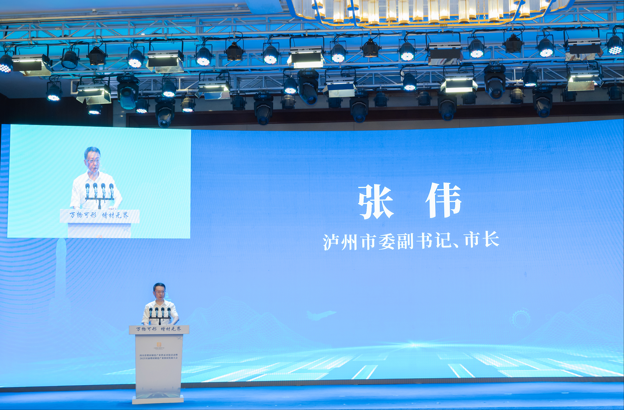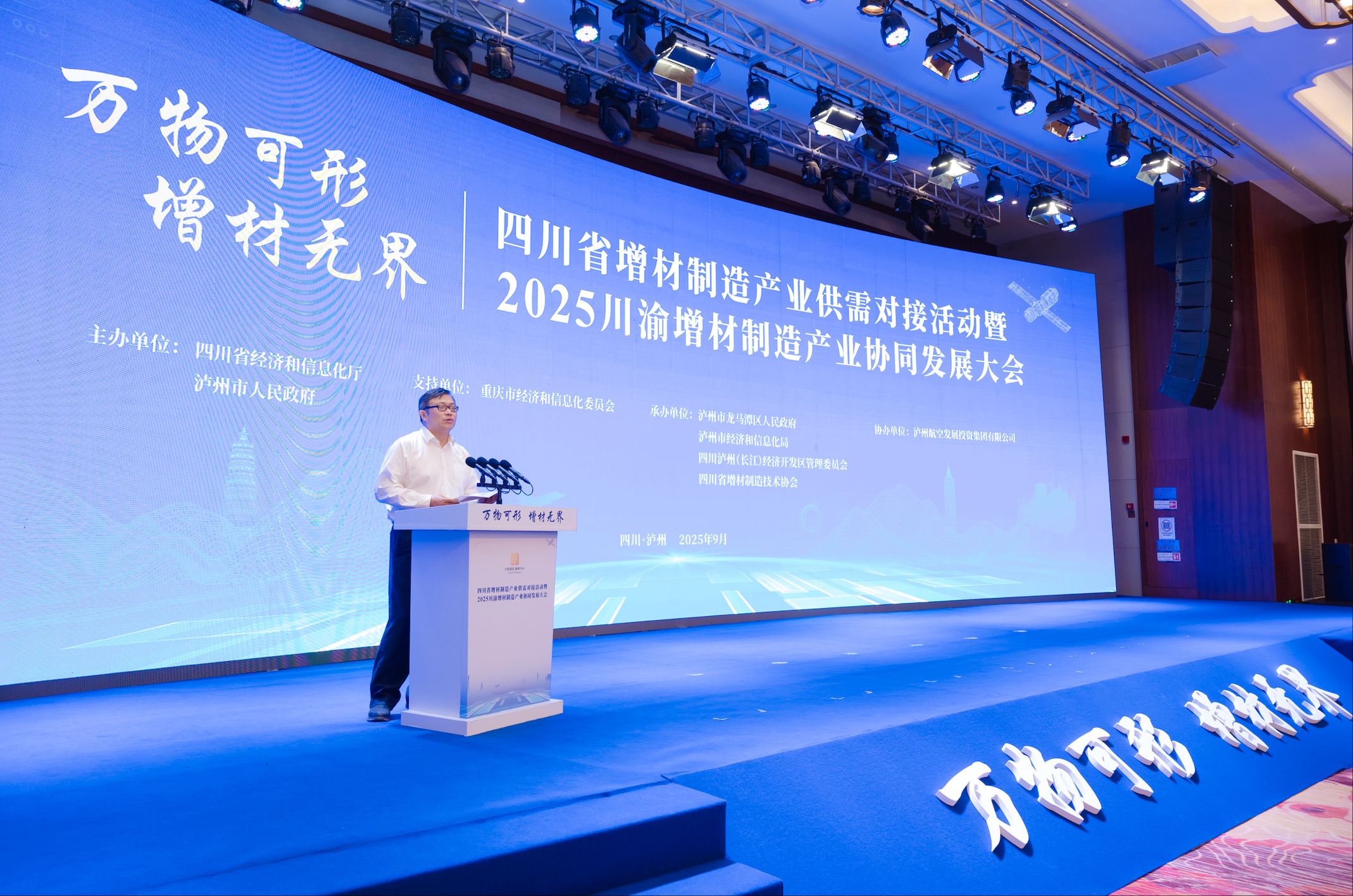 9月19日,由四川省经济和信息化厅、泸州市人民政府主办,重庆市经济和信息化委员会支持,泸州市龙马潭区人民政府、泸州市经济和信息化局、四川泸州(长江)经济开发区管理委员会和四川省增材制造技术协会承办,泸州航空发展投资集团有限公司协办,以“万物可形、增材无界”为主题的四川省增材制造产业供需对接活动暨2025川渝增材制造产业协同发展大会在泸州市举行。