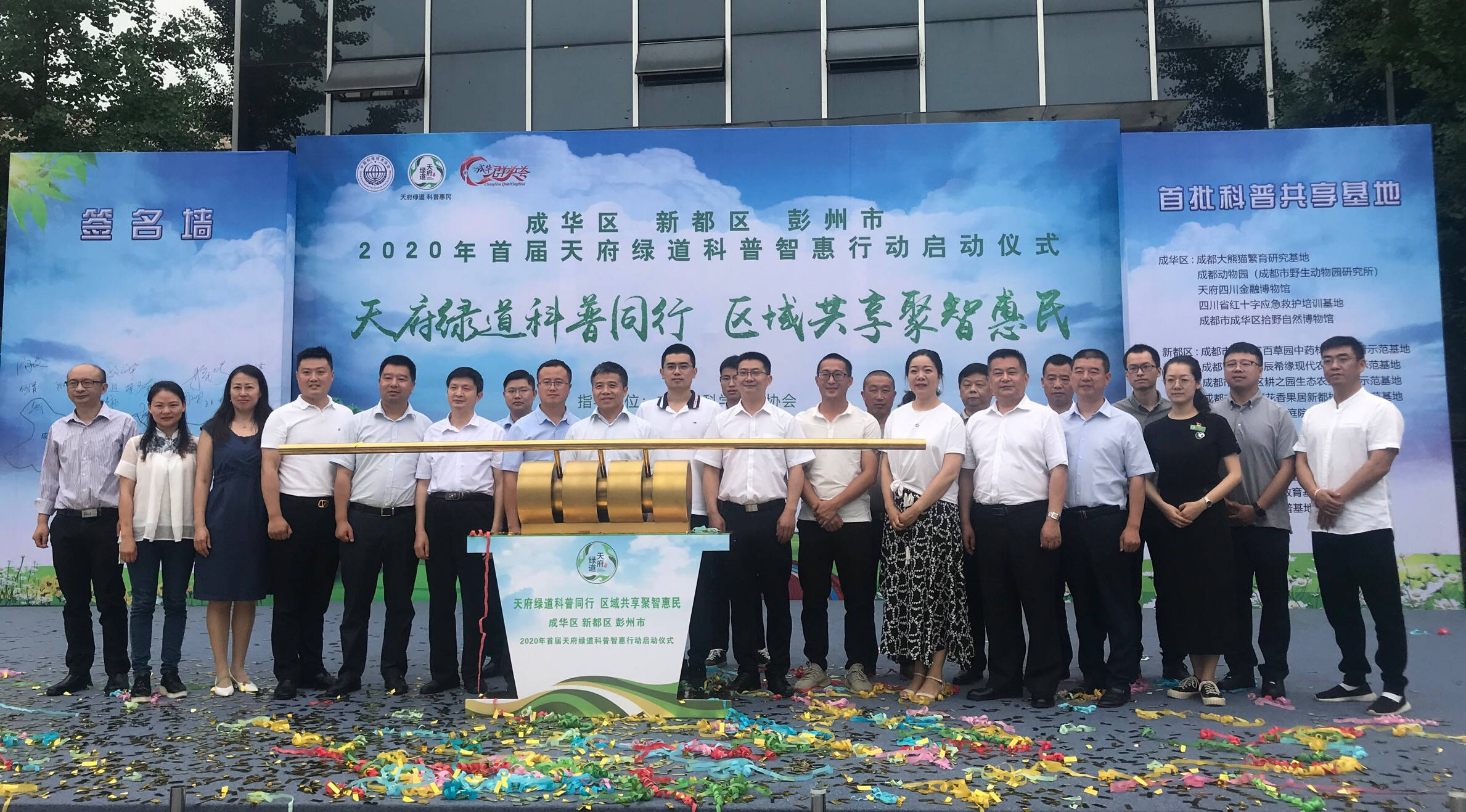 启动仪式上,新都区委常委、总工会主席钟成基为活动致辞,成都市科协发布了首批绿道科普共享基地名录成都市科协党组书记、副主席蔡晓军宣布绿道科普智惠行动启动。首批15家科普共享基地资源共享,紧密合作,在为沿途绿道打造相关领域科普场景的同时,为带动区域旅游、现代农业新经济产业发展促进创业就业探索新的科普服务方式。现场还发布了绿道科“抖”行动,参与嘉宾们纷纷拍摄短视频,并以互联网的形式向外界展现未来的美好蓝图。